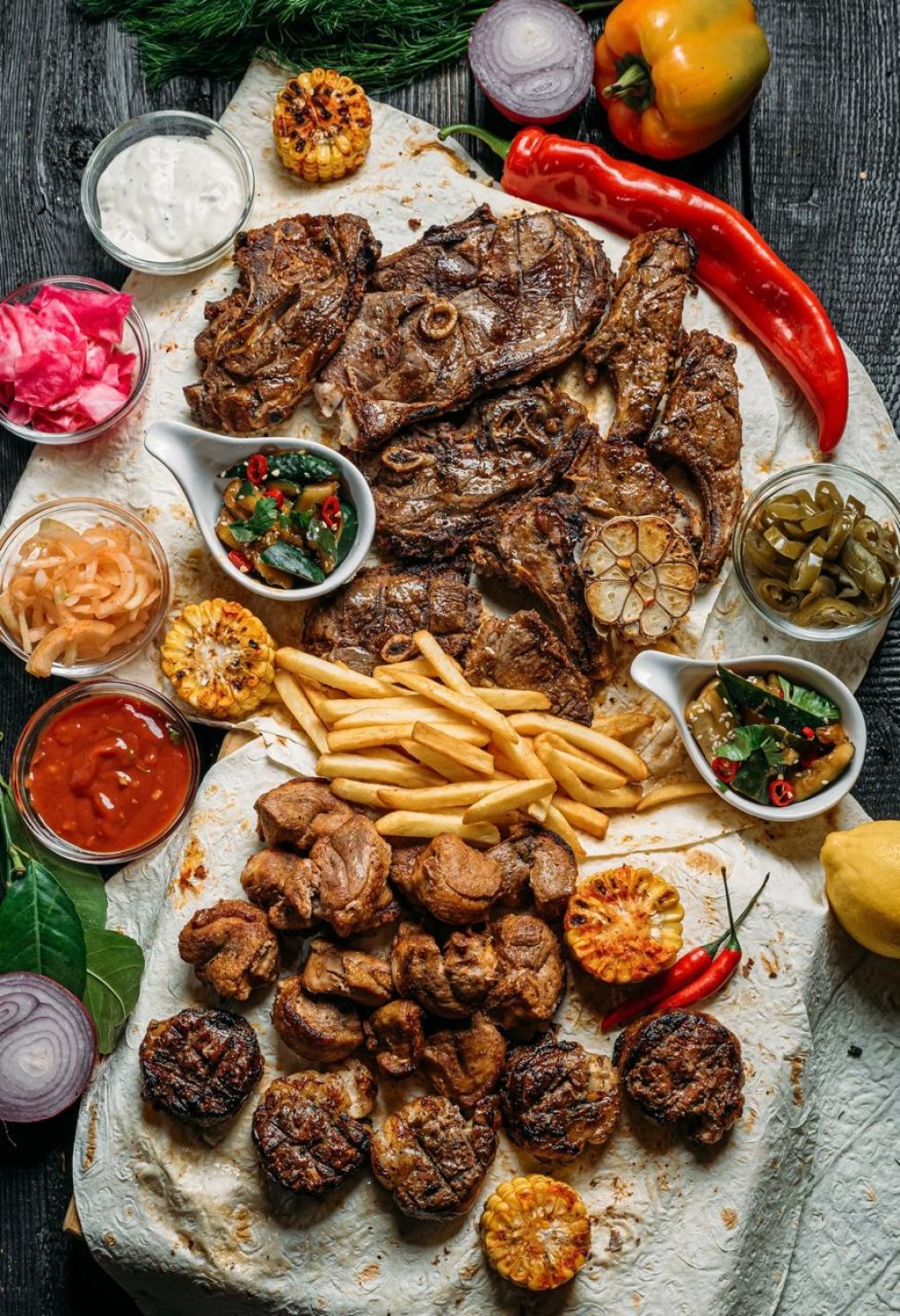 Царский сет по кавказским традициям. В составе только самое уважаемое мясо: баранина, сочная утка, и настоящий джигар (печень в сетке) - всё самое сочное, ароматное, то, что на Кавказе подают "Как для родного брата". Рассчитано на 5-6 человек.