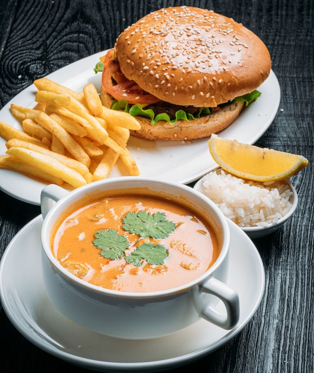Суп Том-ям с курицей, бургер "Самурай"